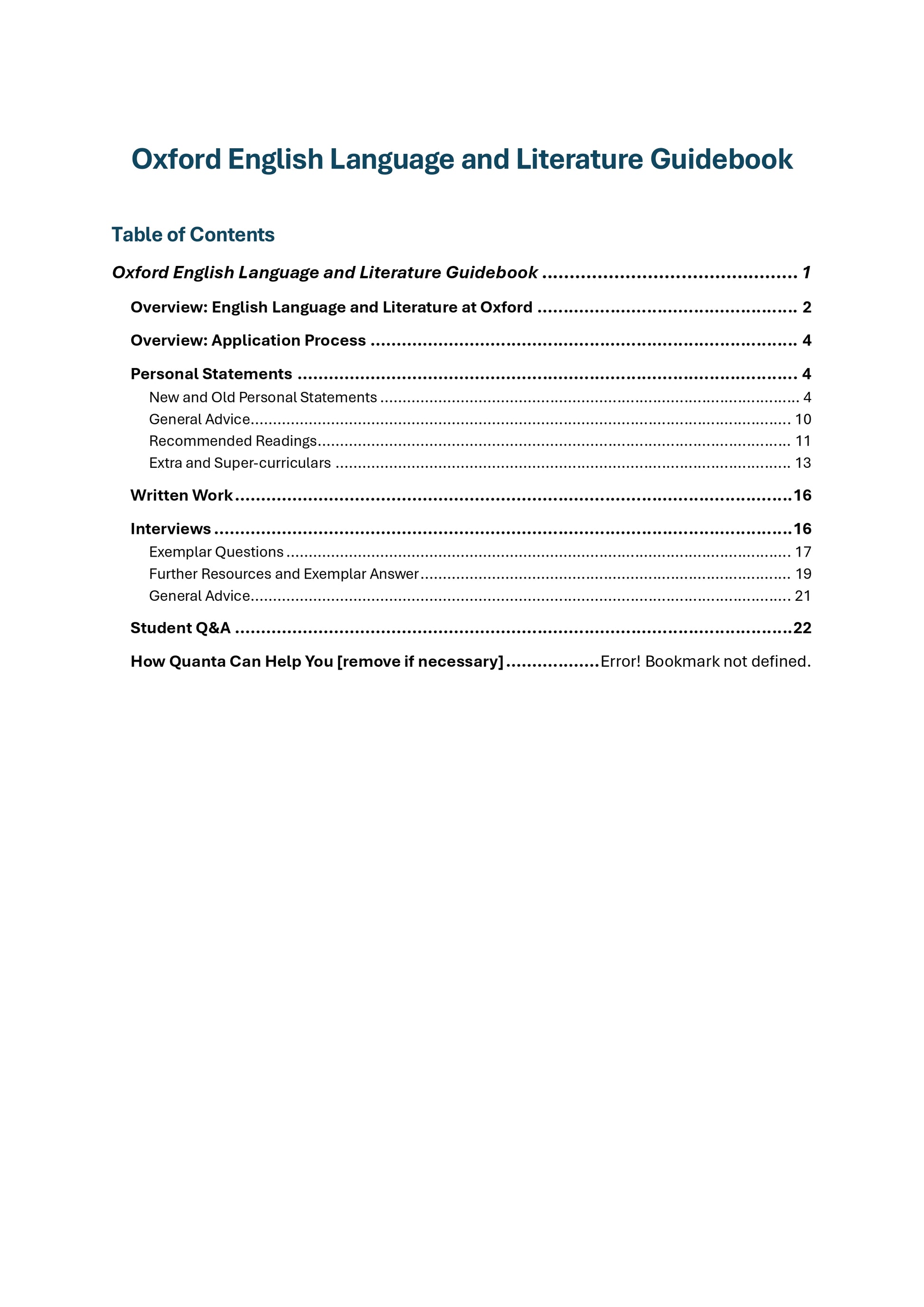 Get an offer to study English Language and Literature at Oxford University using this Application Guide from Quanta Academy, which includes - Personal Statement (new system) advice and readings, Interview advice, and more.